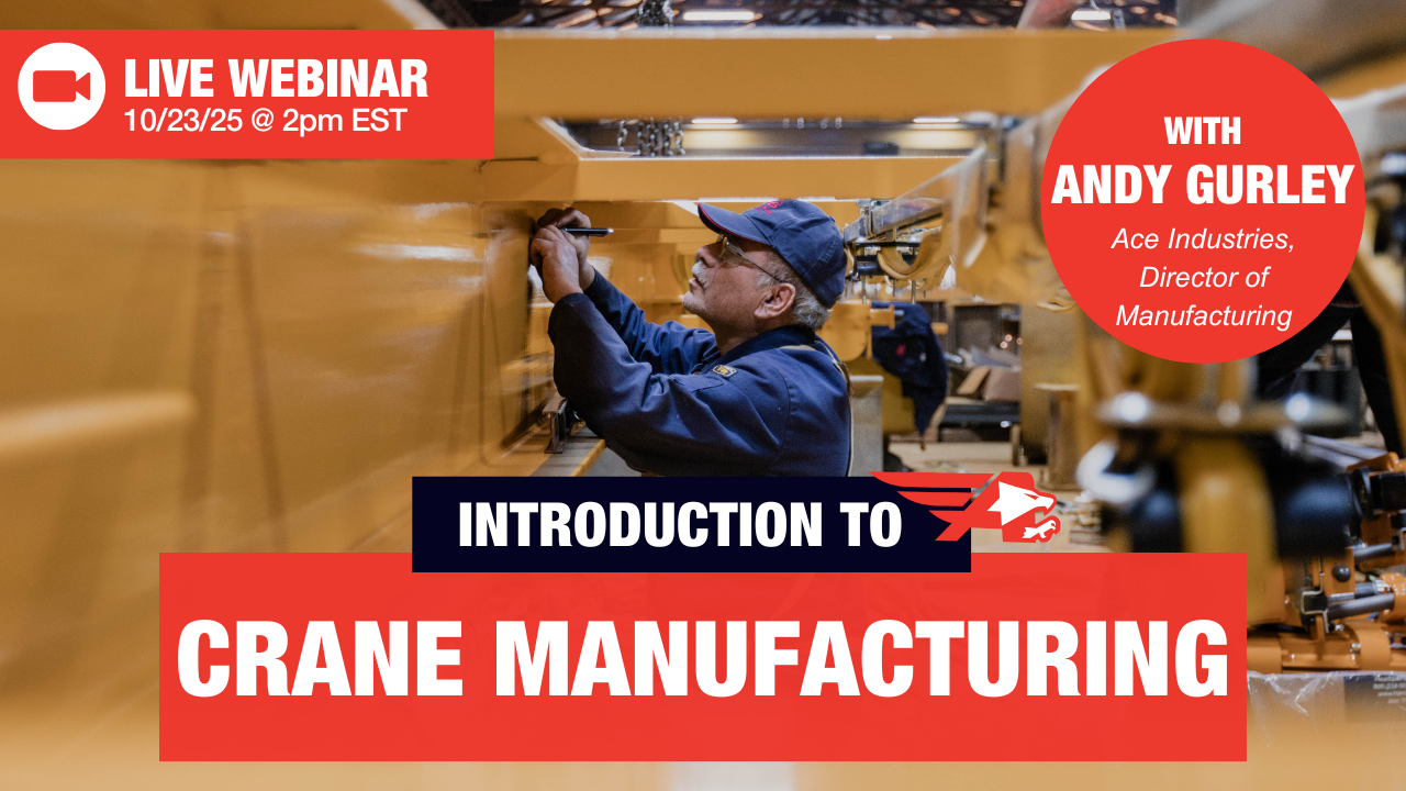 In this webinar, we took an inside look at crane manufacturing. Designing or sourcing a crane involves hundreds of small decisions that add up to major differences in performance and cost. This webinar gave attendees a practical understanding of the crane manufacturing process so they could ask the right questions and make informed choices for their future projects.