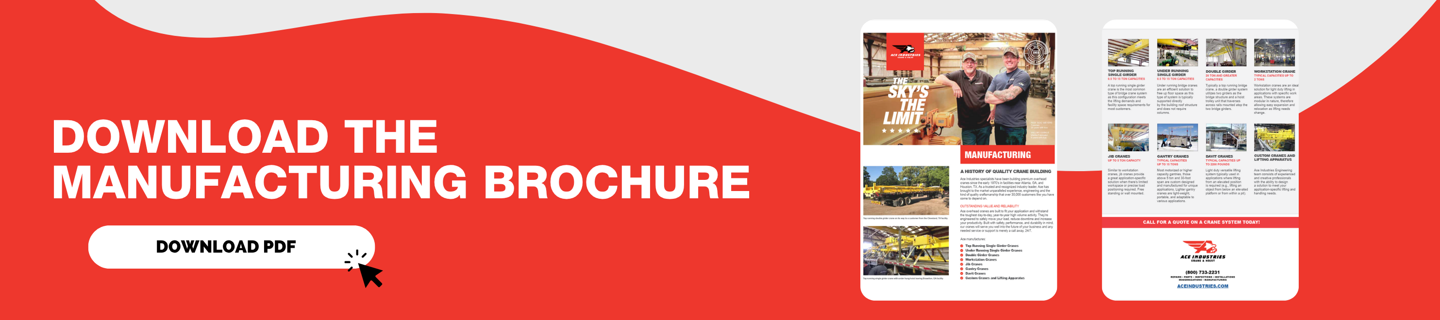 Correct installation by a trained professional conforming to OSHA, ANSI and CMAA regulations is essential for your crane operators’ safety and the efficiency of your equipment. Ace provides top qualified teams of technicians and the necessary equipment to get your crane up and running smoothly within your timeline and production requirements. From single and double girder bridge cranes, jib cranes, hoists, runways and more, our experienced service personnel come prepared, on-time and with the goal of making your installation as seamless to your workflow as possible. Schedule or talk to an Ace representative today about installing your next crane! (800) 733-2231