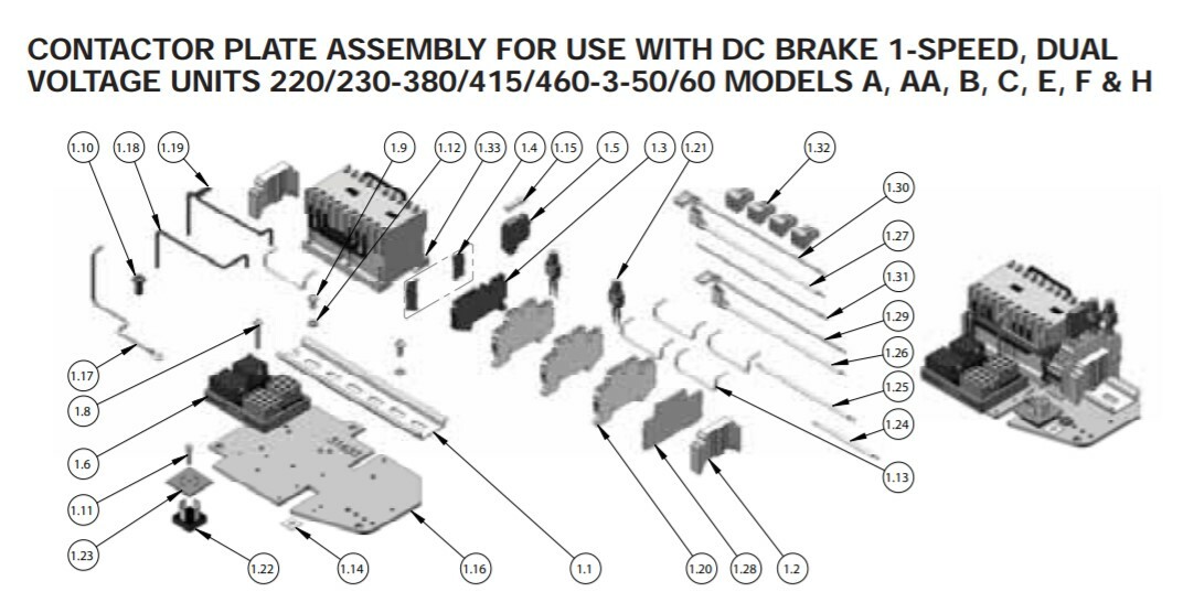 Contactor (DC Brake 1Spd, 230/460, Models A-H)