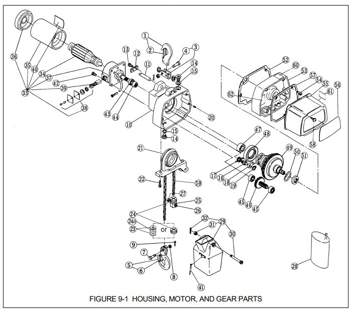 ED Electric Hoist - Housing-Motor-Gears (Fig 9-1)