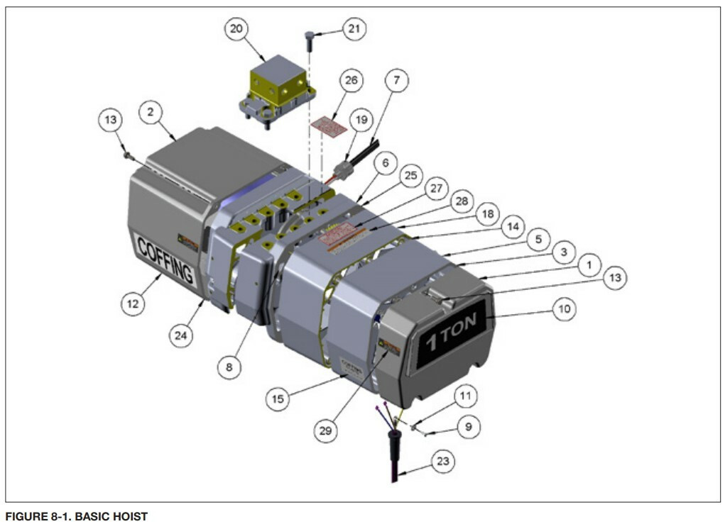 Coffing Hoist Parts,Coffing EC3 (Large Frame) Parts,Basic Hoist (Figure 8-1)
