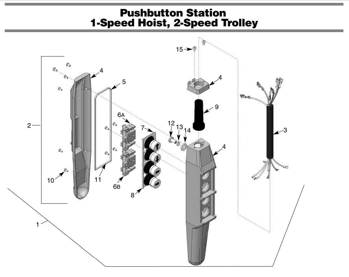 Pushbutton Station 1-Speed Hoist, 2-Speed Trolley