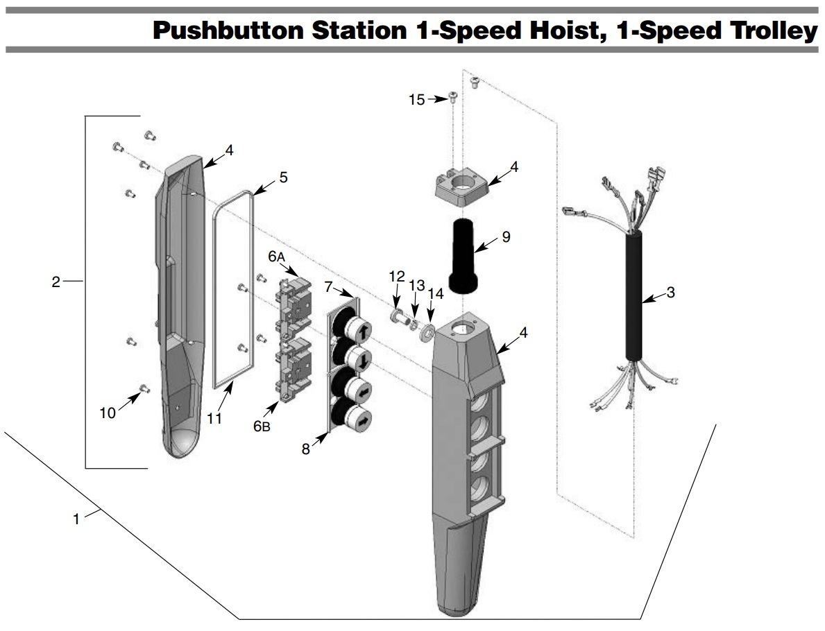 Pushbutton Station 1-Speed Hoist, 1-Speed Trolley