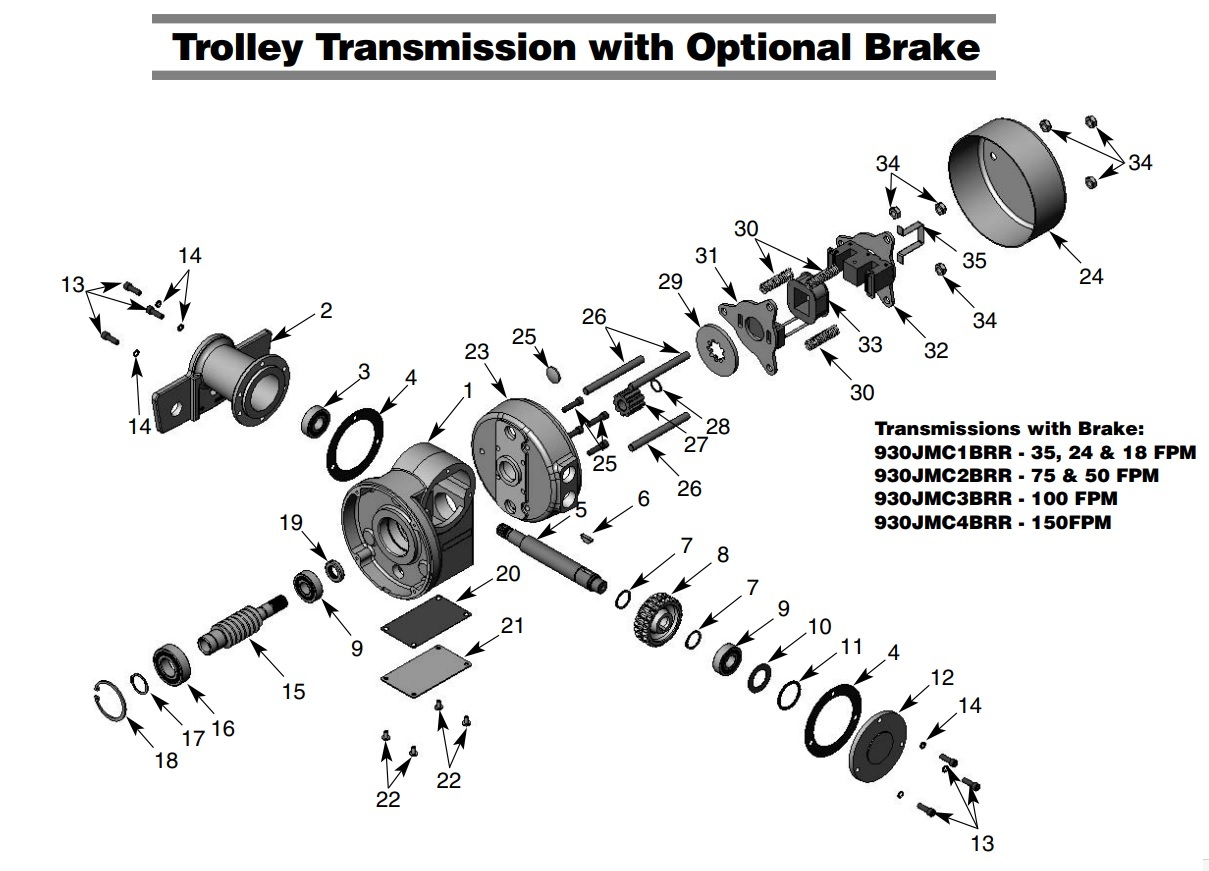 Trolley Transmission with Optional Brake